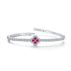 Constructed with comfort and glamor in mind, this flexible tennis bracelet is set in Lafonn's signature Lassaire simulated diamonds in sterling silver bonded with platinum. The good-luck symbol, set with lab-grown rubies, adds a sparkling charm to the bracelet.