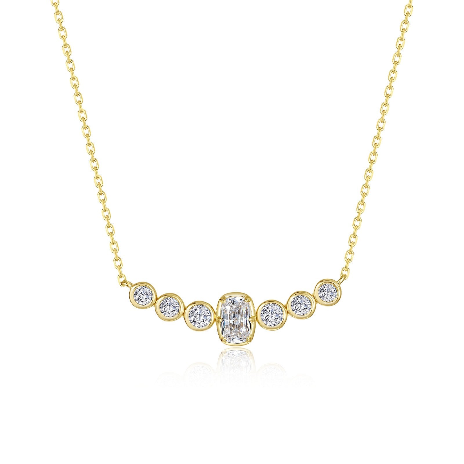 Seven symbols, one radiant statement. Part of our 7 Symbols of Joy Collection, the Cushion of Joy Necklace features seven bezel-set stones, each representing Longevity, Health, Love, Happiness, Peace, Prosperity, & Friendship. Set with Lafonn’s signature Lassaire simulated diamonds in sterling silver and finished with Lafonn’s exclusive TR Gold plating, a new and improved process that preserves the rich color of gold and enhances its brilliance.
