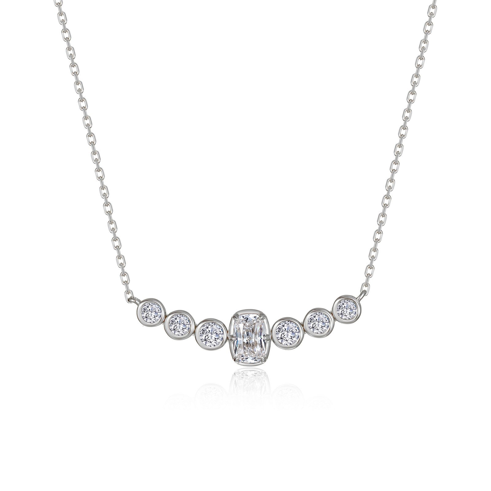 Seven symbols, one radiant statement. Part of our 7 Symbols of Joy Collection, the Cushion of Joy Necklace features seven bezel-set stones, each representing Longevity, Health, Love, Happiness, Peace, Prosperity, & Friendship. Set with Lafonn’s signature Lassaire simulated diamonds in sterling silver bonded with platinum.