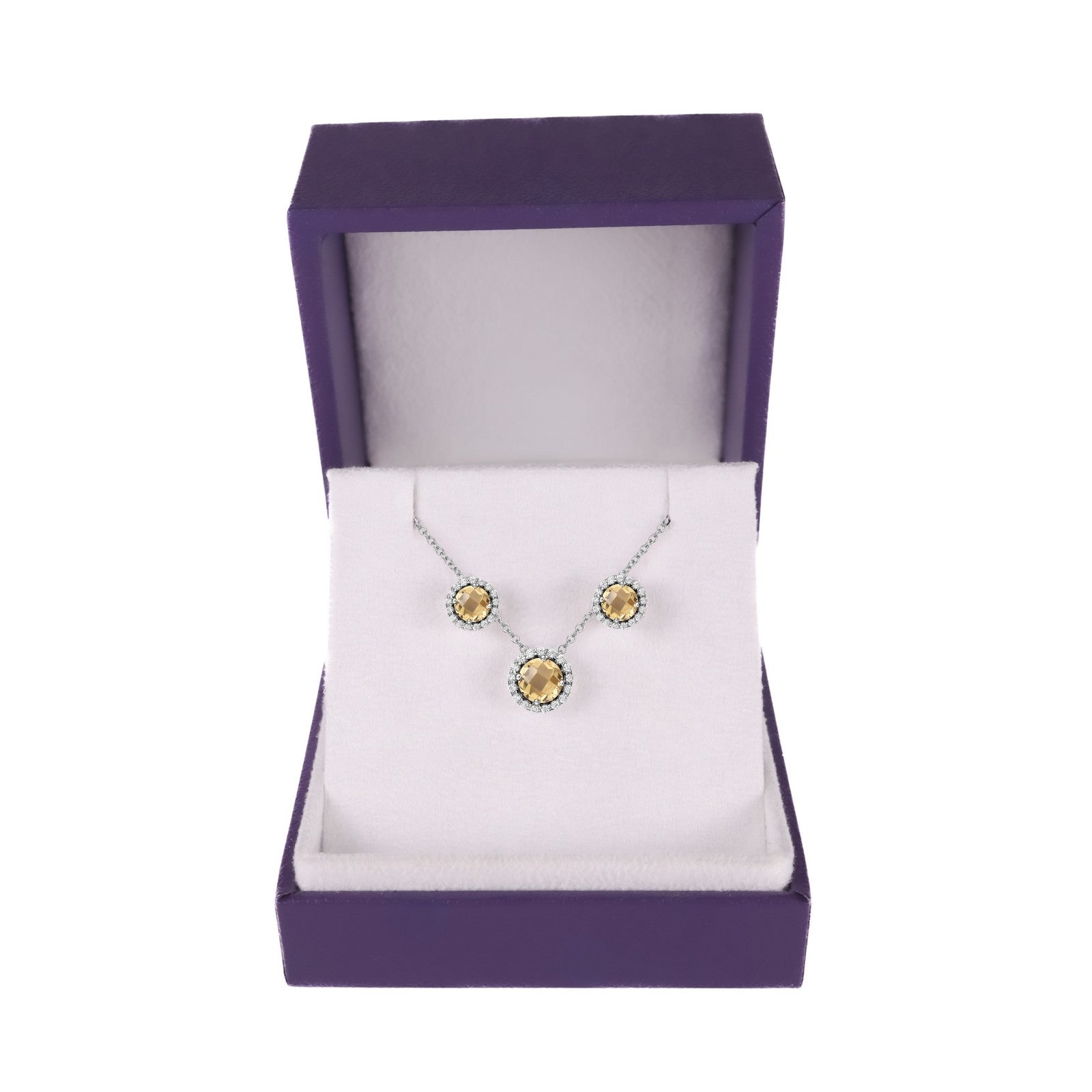 The BTH25CTPHL Special includes one pair of genuine citrine halo stud earrings and a genuine citrine necklace surrounded by Lafonn's signature Lassaire simulated diamonds in sterling silver bonded with platinum.